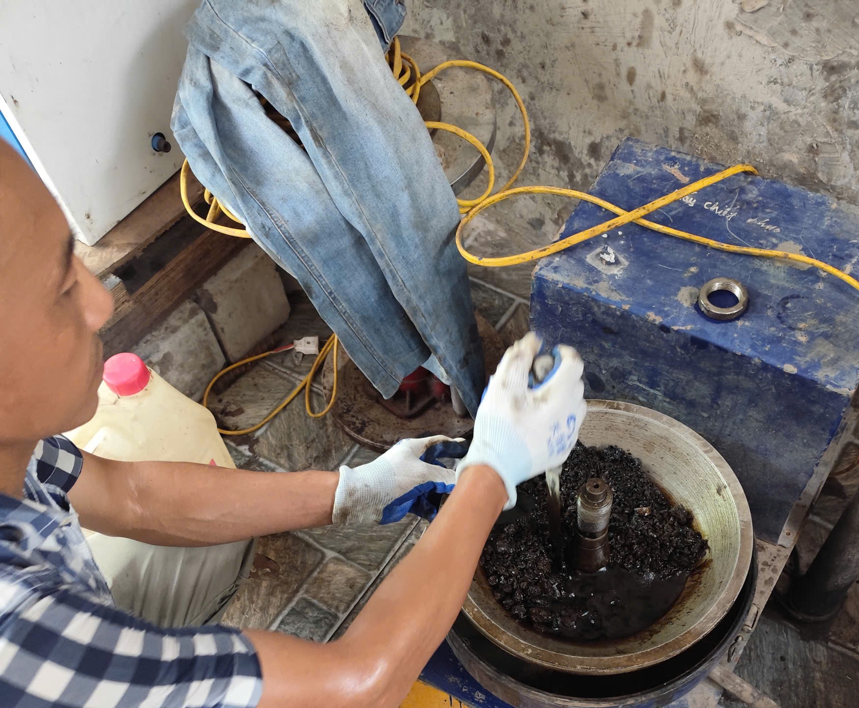 Mẫu bê tông nhựa được hòa tan trong dung môi chuyên dụng để tách nhựa khỏi cốt liệu.