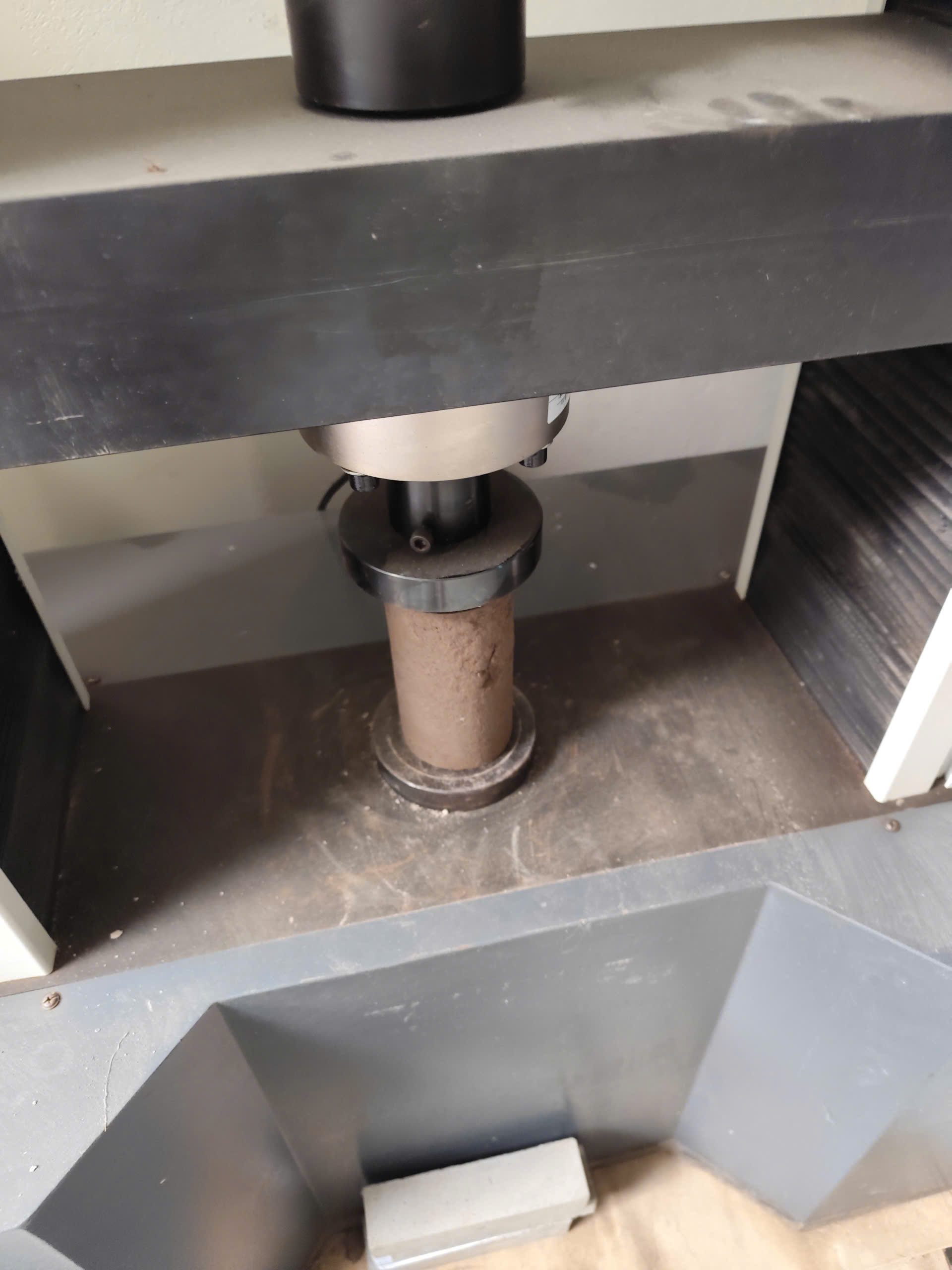 Mẫu đất hình trụ được đặt giữa hai bàn nén và chịu tải trọng nén dọc trục với tốc độ biến dạng không đổi, không có áp lực hông.