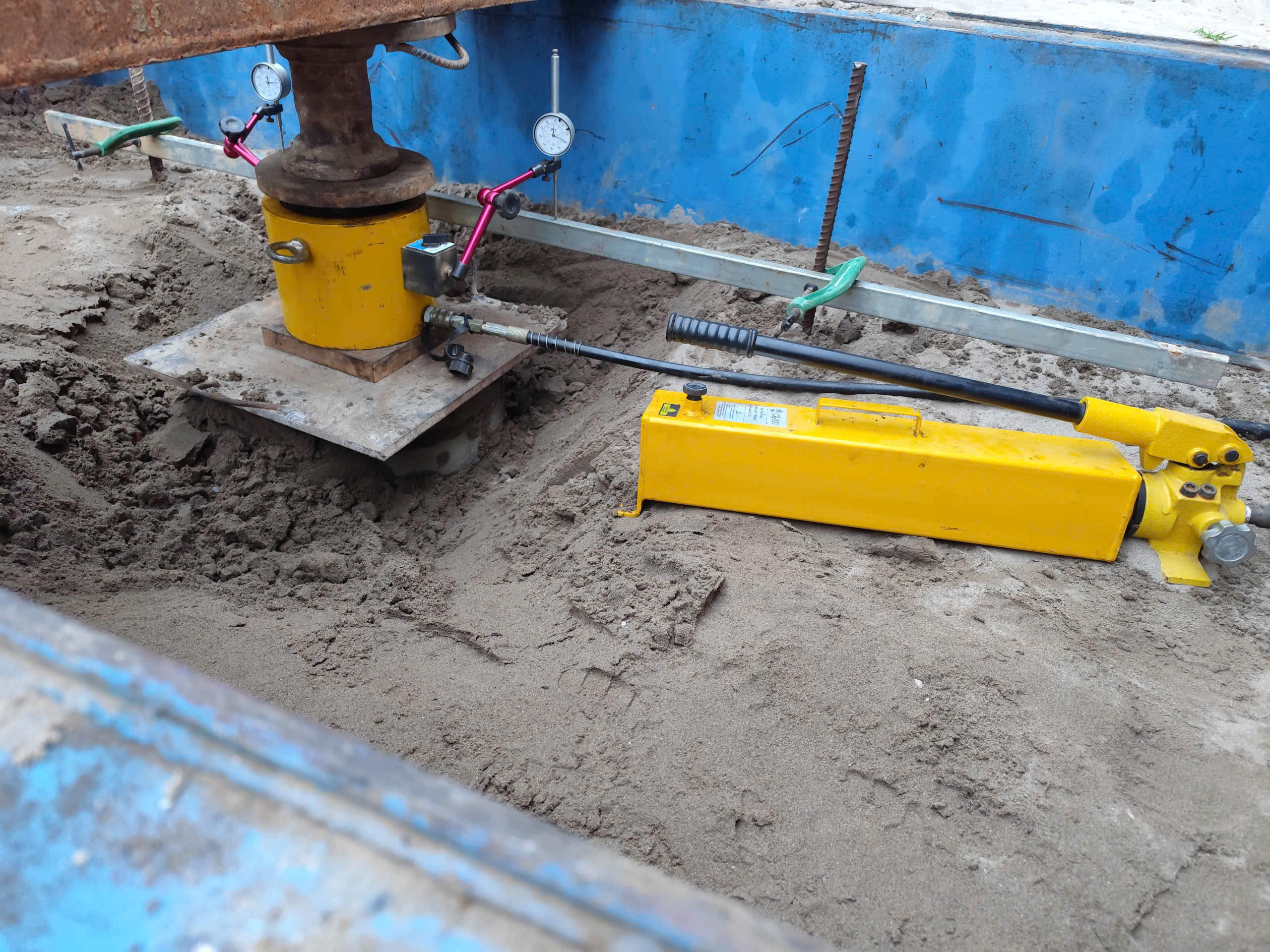 Tải trọng nén được truyền xuống đầu cọc theo từng cấp tải thông qua kích thủy lực và hệ phản lực (dầm neo hoặc cọc neo).