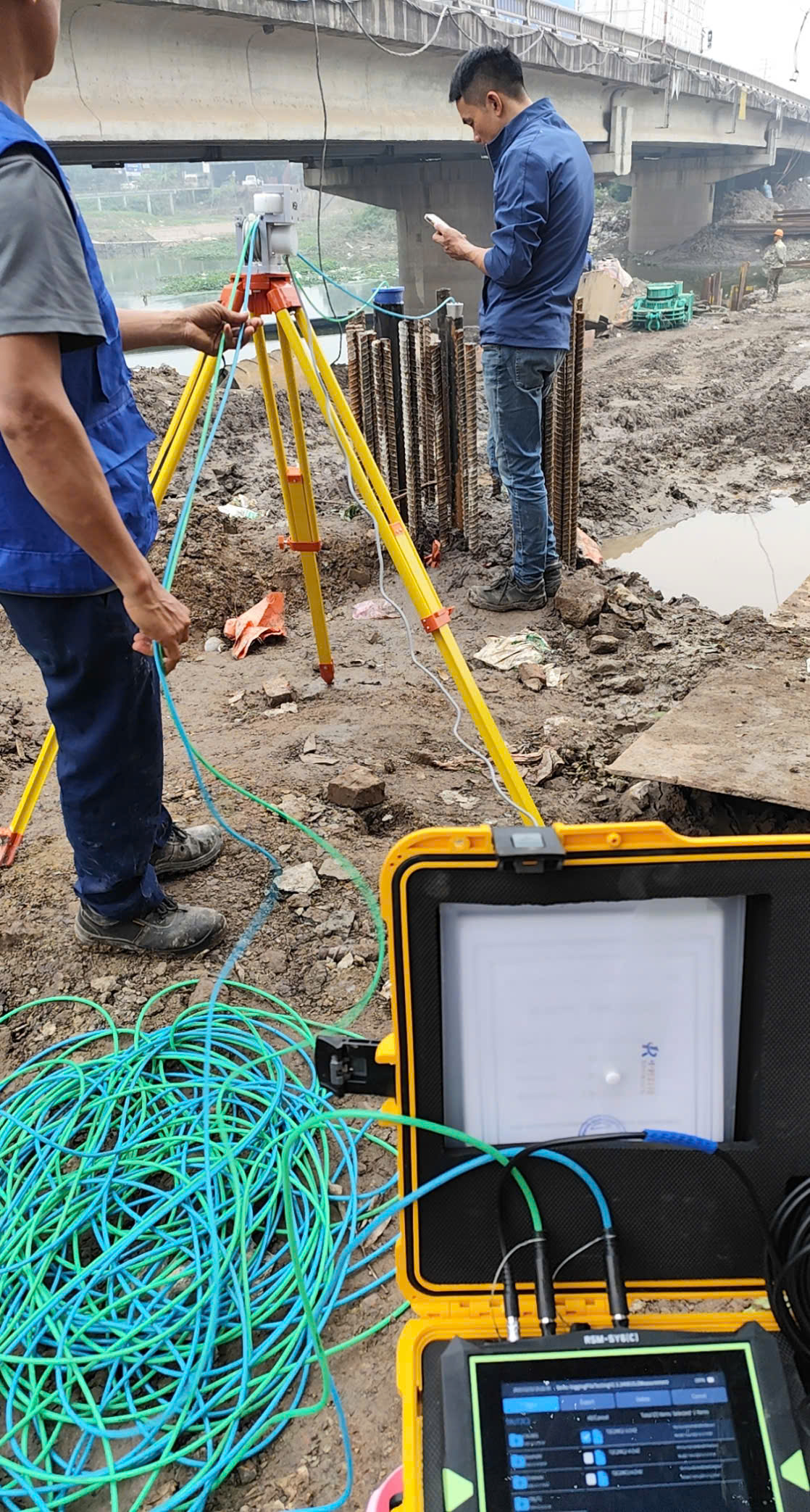 (Thực hiện theo TCVN 9396:2012 – Cọc khoan nhồi – Xác định tính đồng nhất của bê tông bằng phương pháp siêu âm truyền qua ống đặt sẵn)